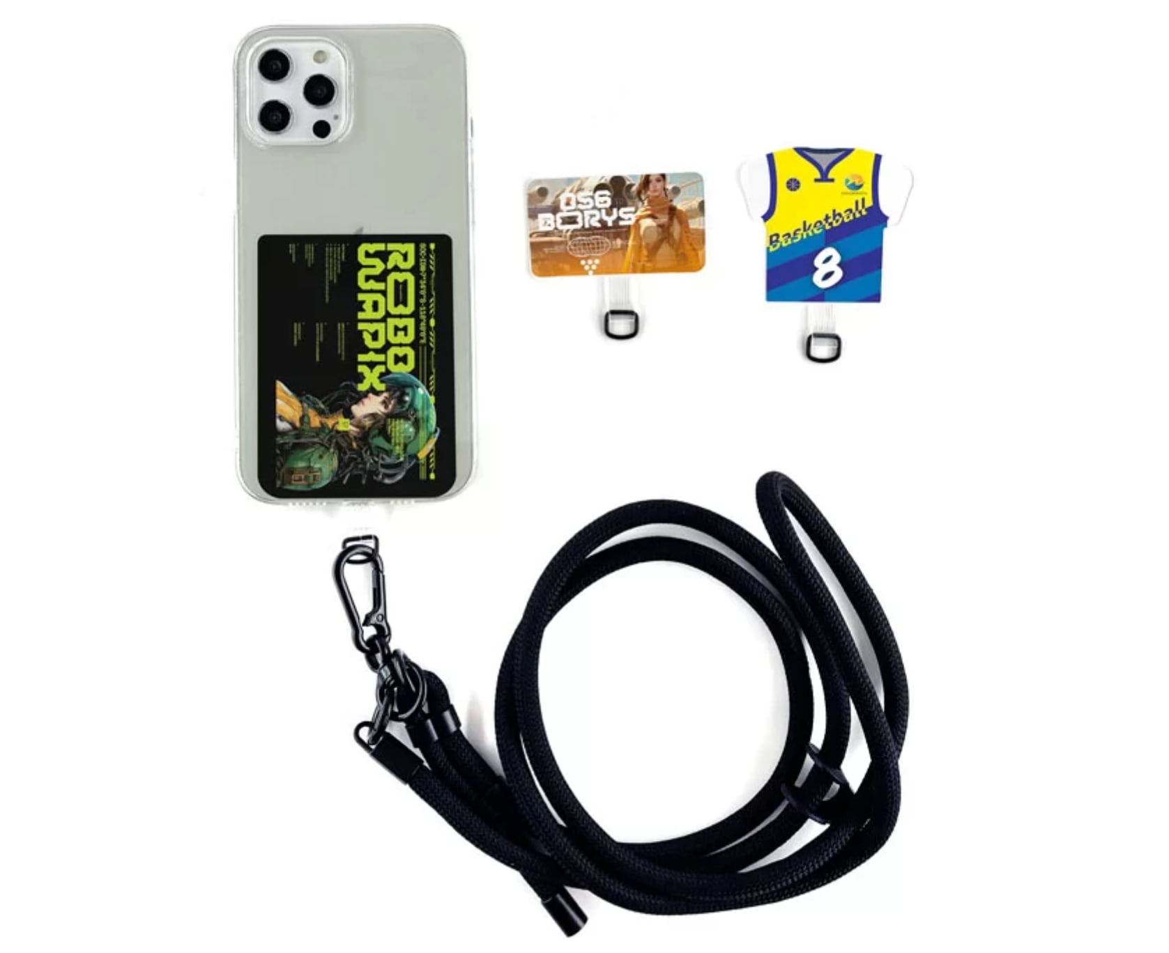 ・ハードケースなど固いケースの場合はケーブル穴が上記Dリングサイズが入るスマホケース。